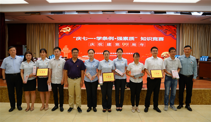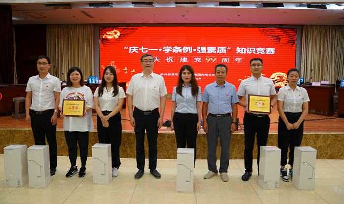 创新学习载体,提升能力素养。为推动全员认真学习贯彻《中国共产党国有企业基层组织工作条例(试行)》《中国共产党支部工作条例(试行)》和习近平总书记来陕考察重要讲话精神,6月29日,足球竞彩网 党委组织举办“庆七一·学条例·强素质”知识竞赛活动,西安银行安康分行和长安银行安康分行应邀参赛,市国资委市属国企监事会主席李世吉、市财政局副调研员杨文出席指导。经过必答题、抢答题和加赛题三轮激烈角逐,融资租赁公司代表队获得一等奖,足球竞彩网 1队和足球竞彩网 2队代表队分获二等奖,长安银行安康分行代表队,财信小贷公司代表队,财信担保公司2队代表队分获三等奖。通过本次知识竞答活动的方式,极大提高了党员学条例用条例能力,增强了全员落实“六稳六保”工作要求的担当自觉。